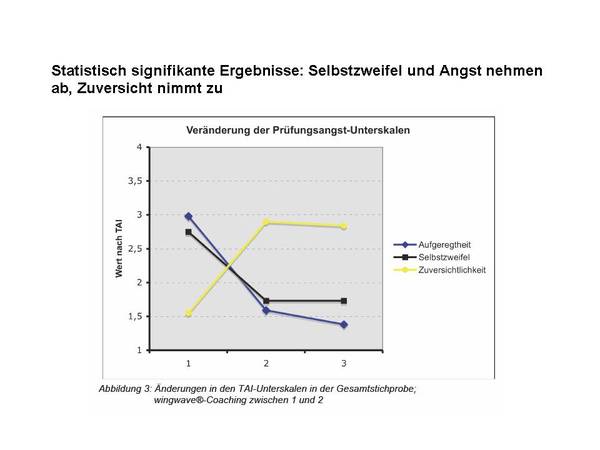 Messzeitpunkt 3: Ca. 3 Wochen nach der zweiten Prüfungssituation, Erhebung des Angstzustandes im Hinblick auf künftig bevorstehende Prüfungssituationen unter Berücksichtigung eventueller Veränderungen, die durch das Wingwave-Coaching eingetreten sind, TAI 3